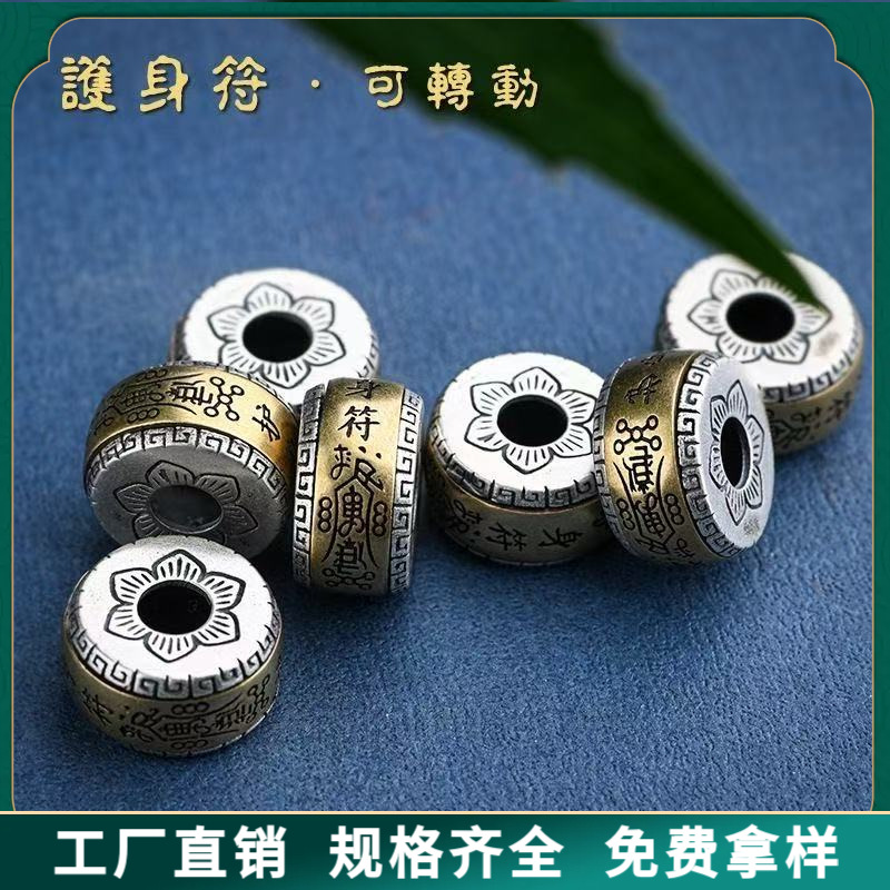 手链隔珠可转动护身符转经合金镀藏古银色金圈祥云手工串珠小饰品