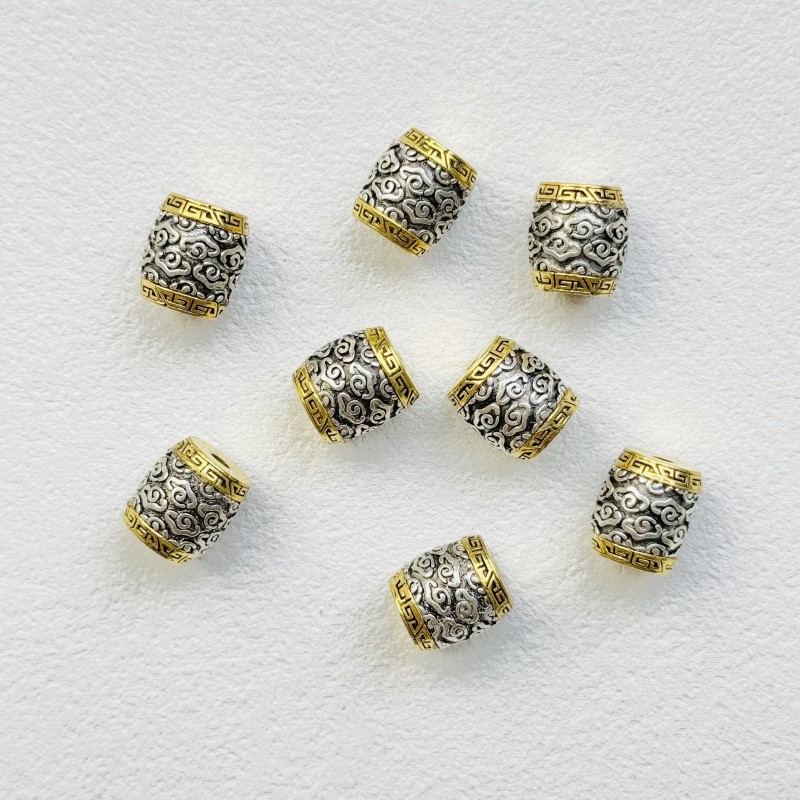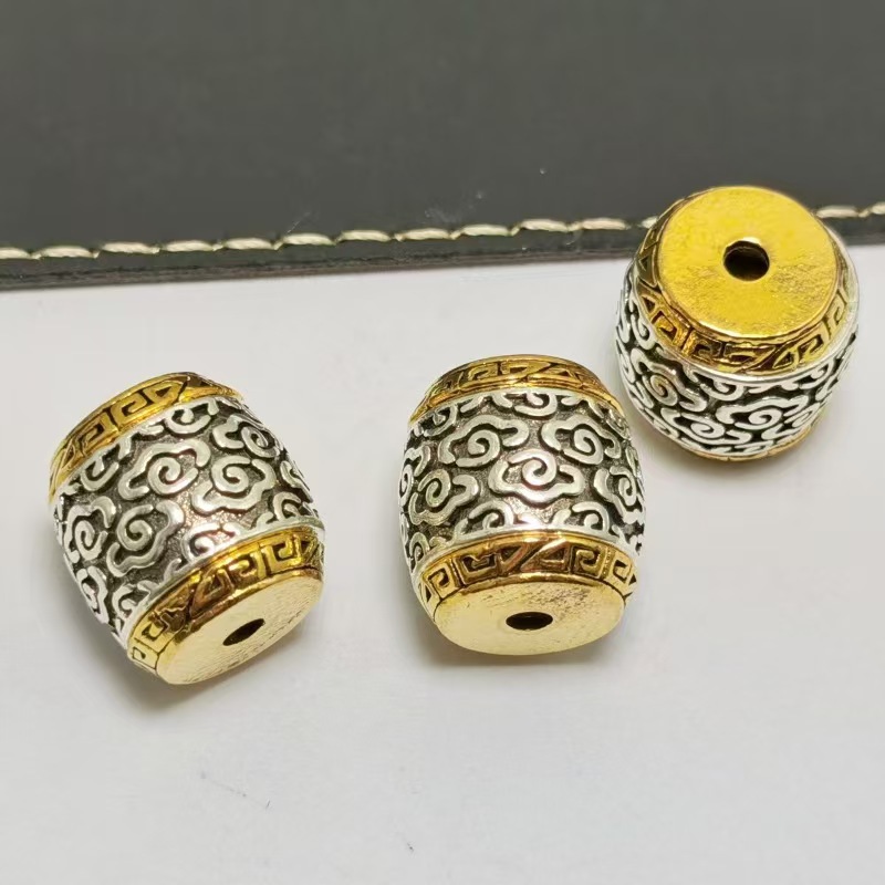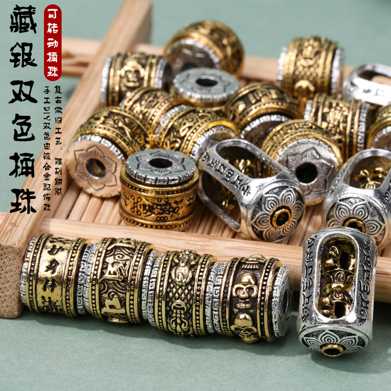 合金藏银隔珠复古仿银祥云纹经文真言桶珠手串项链服装饰品配件