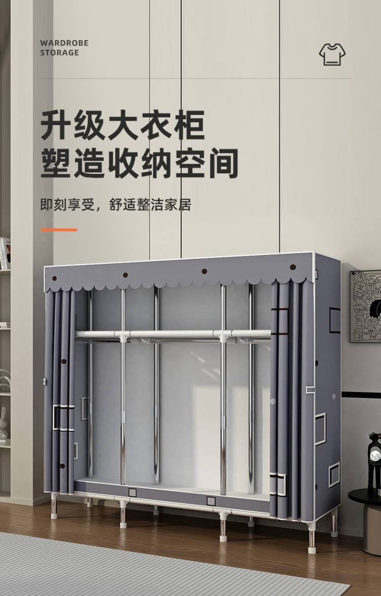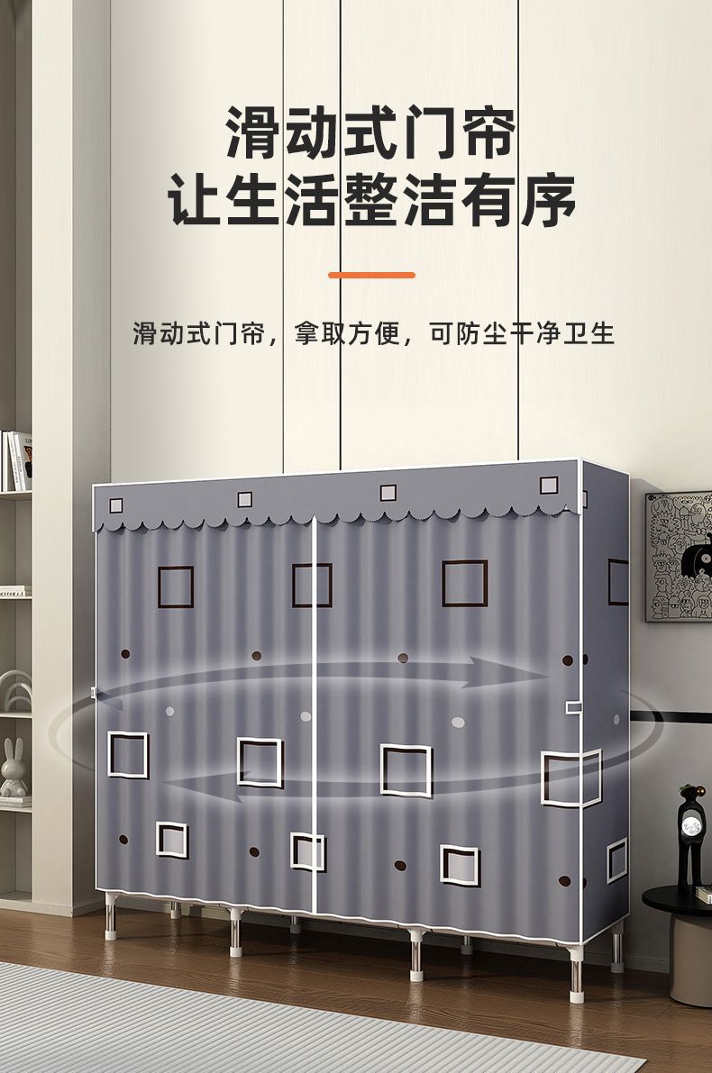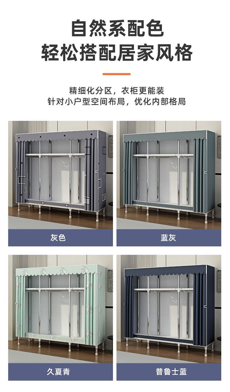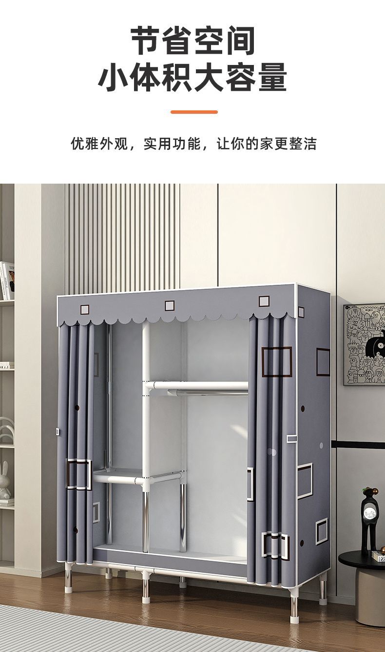 简易衣柜家用卧室出租房用布衣柜收纳柜结实耐用宿舍组装小型衣橱