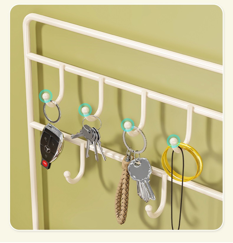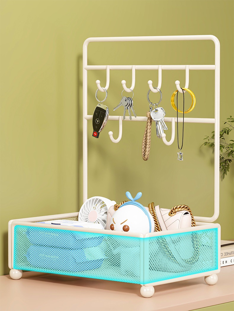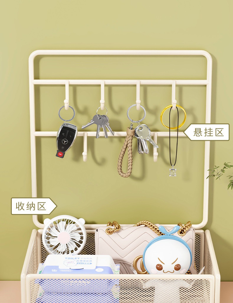 玄関の鍵は装飾箱の置物を収納して、入り口の靴箱の上に物を置く棚のテーブルの上に壁を掛けて整理する神器を置きます。