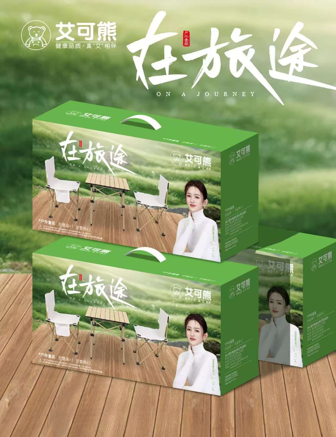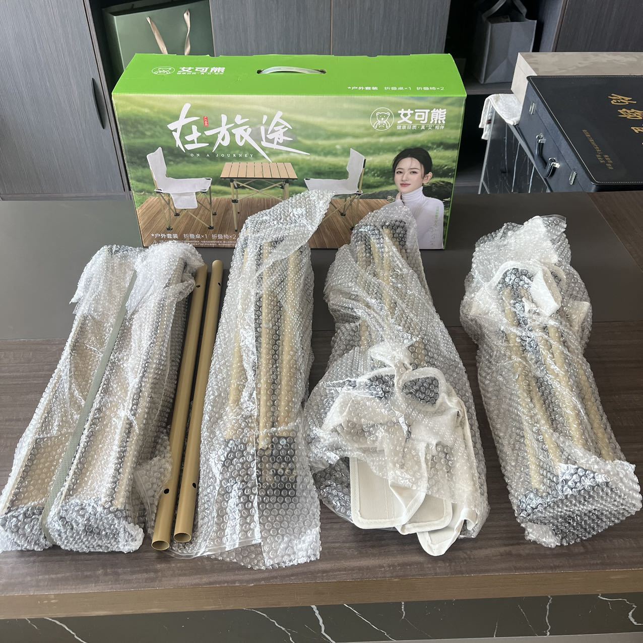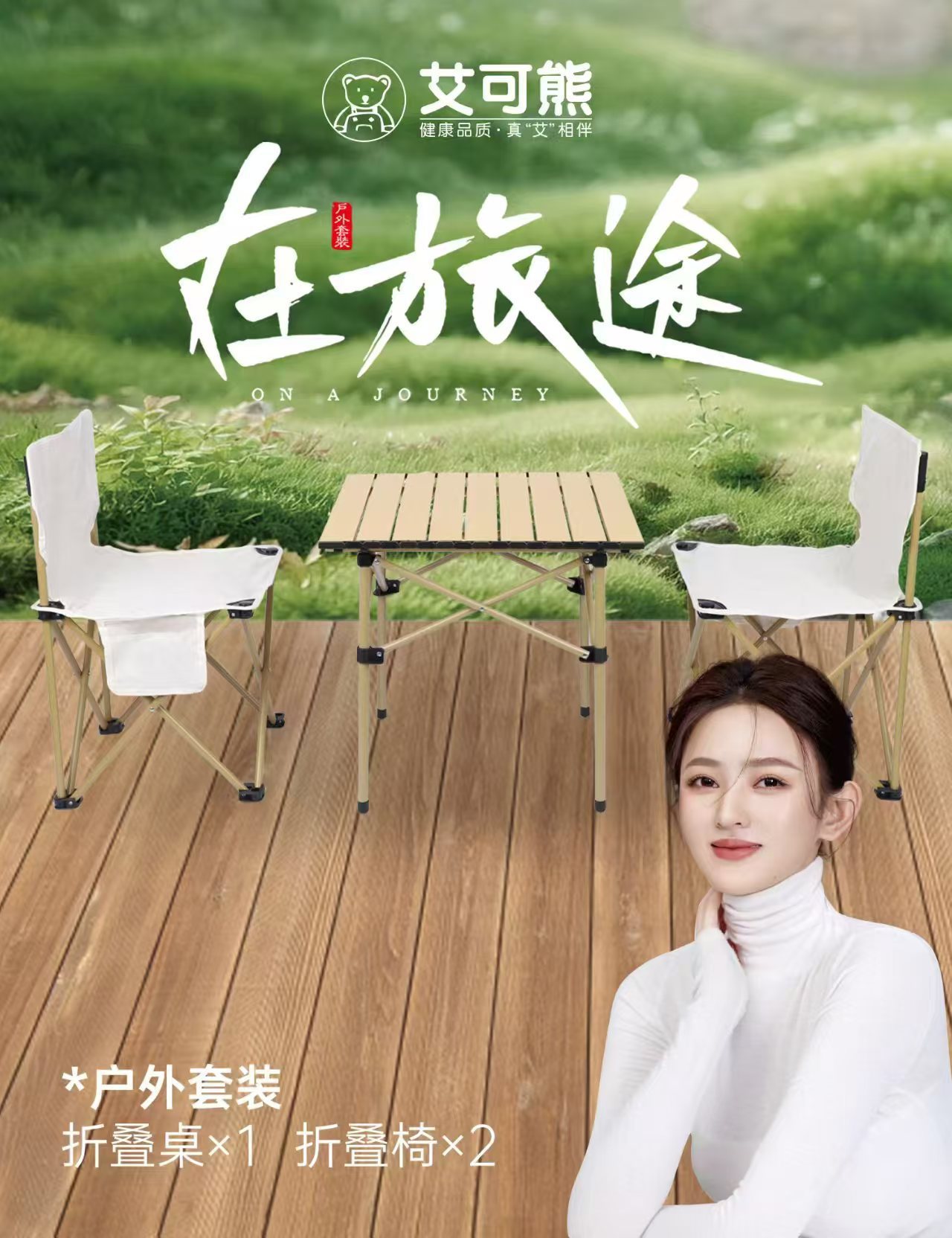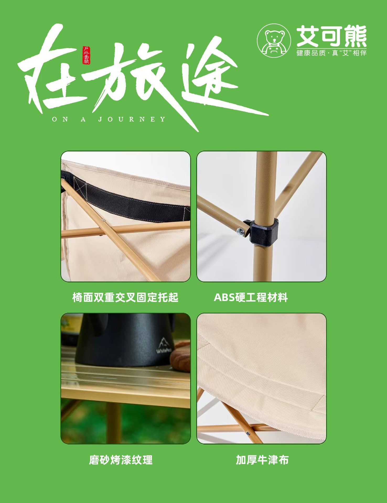 艾菲熊多动能户外野营折叠桌椅套装便携式露营桌椅五件套野餐桌椅