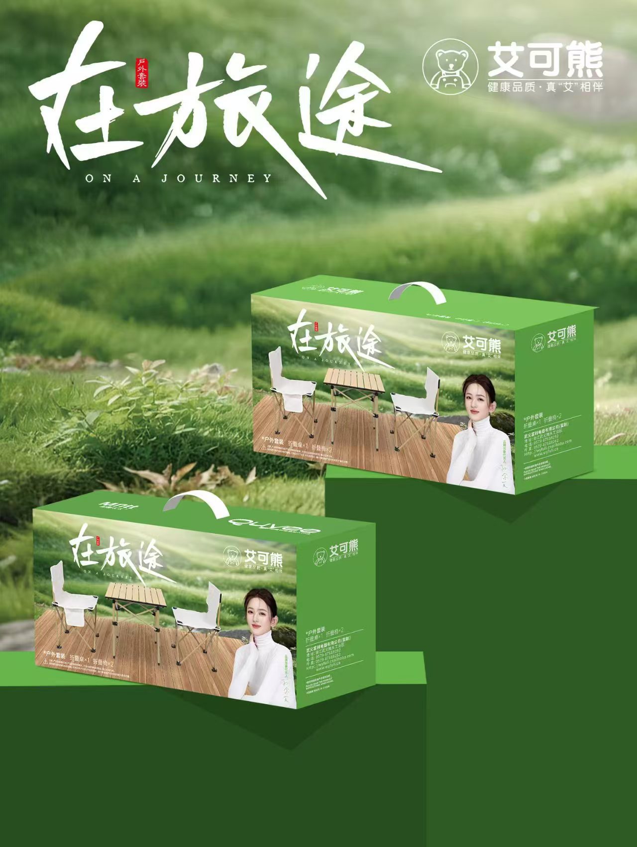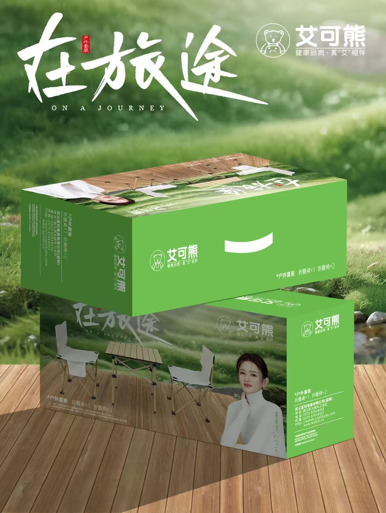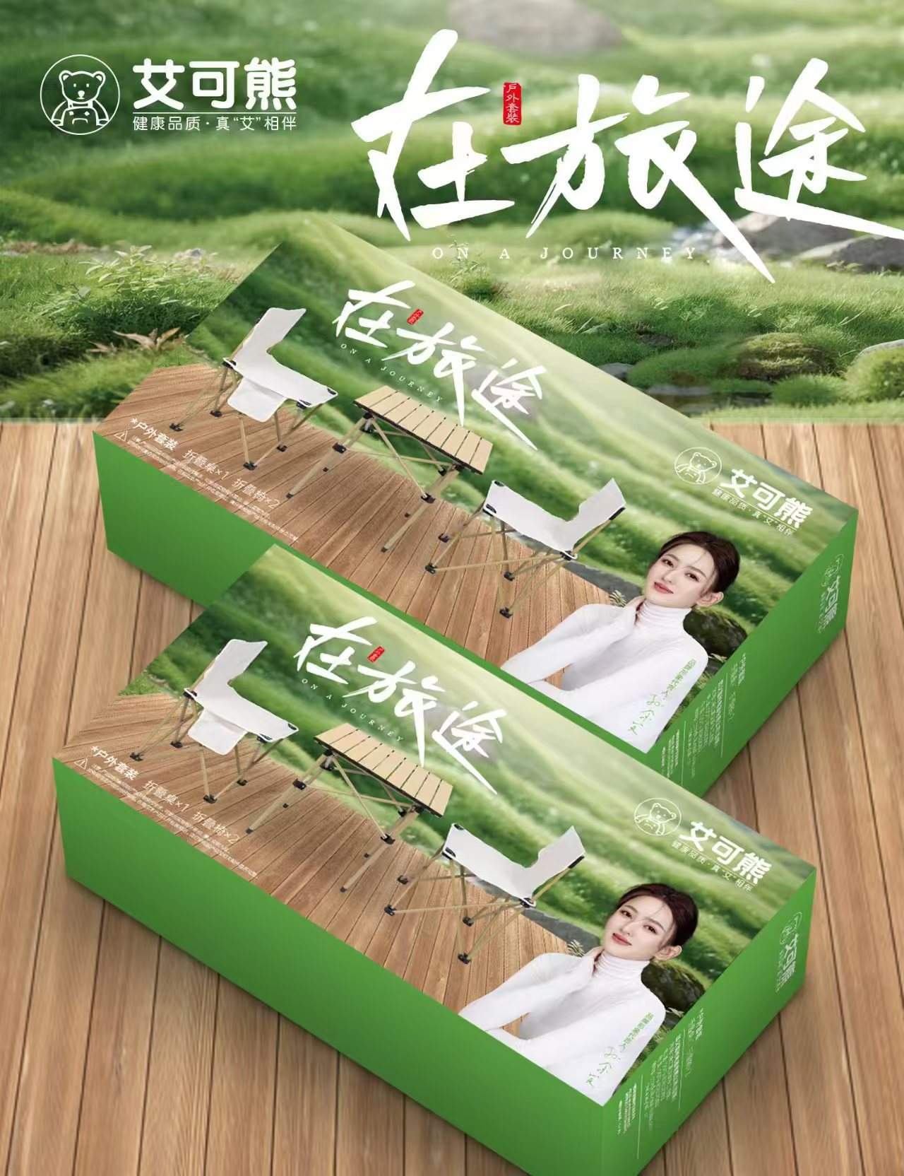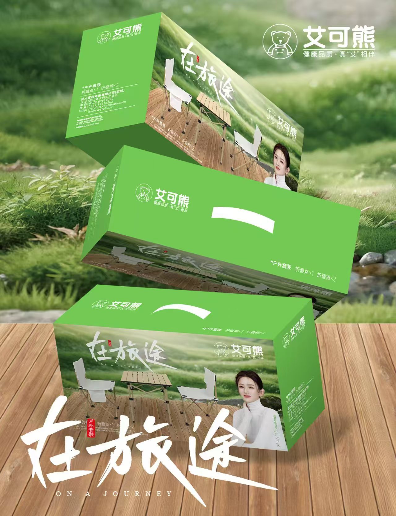 艾菲熊多动能户外野营折叠桌椅套装便携式露营桌椅五件套野餐桌椅