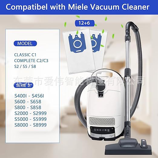 Pack of 12 Vacuum Cleaner Bags Compatible with Miele GN 3D Vacuum Cleaner Classic C1 Complete C1, C2, C3/S400/S600/S800/S2000/S5000/S8000 Series Dust Bags, Includes 3 Exhaust Filters, 3 Motor