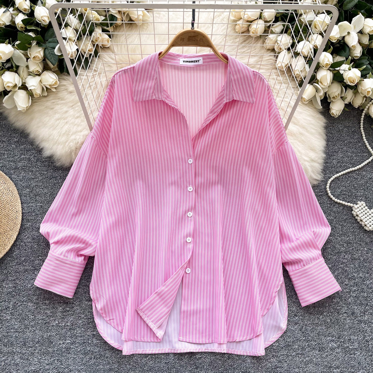 軽熟女士シャツ2025新型通勤百合襟単列ボタンカーディガンストライプシャツ女性カジュアル上着