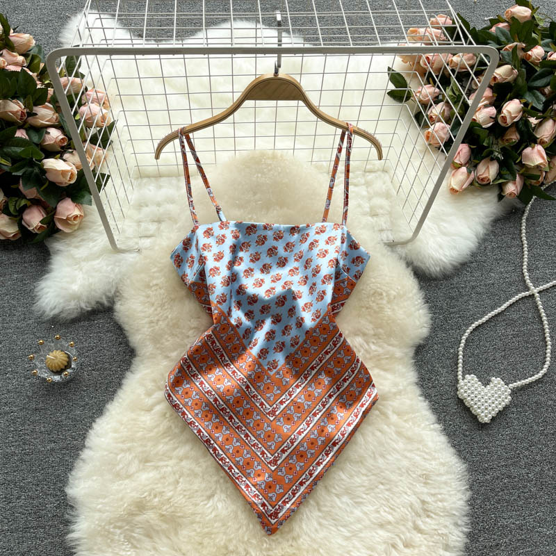 欧米のinsの上着の女性のデザイン感の小さい大衆のプリントの腹のポケットの心の機は背中を露出して身を固めます。