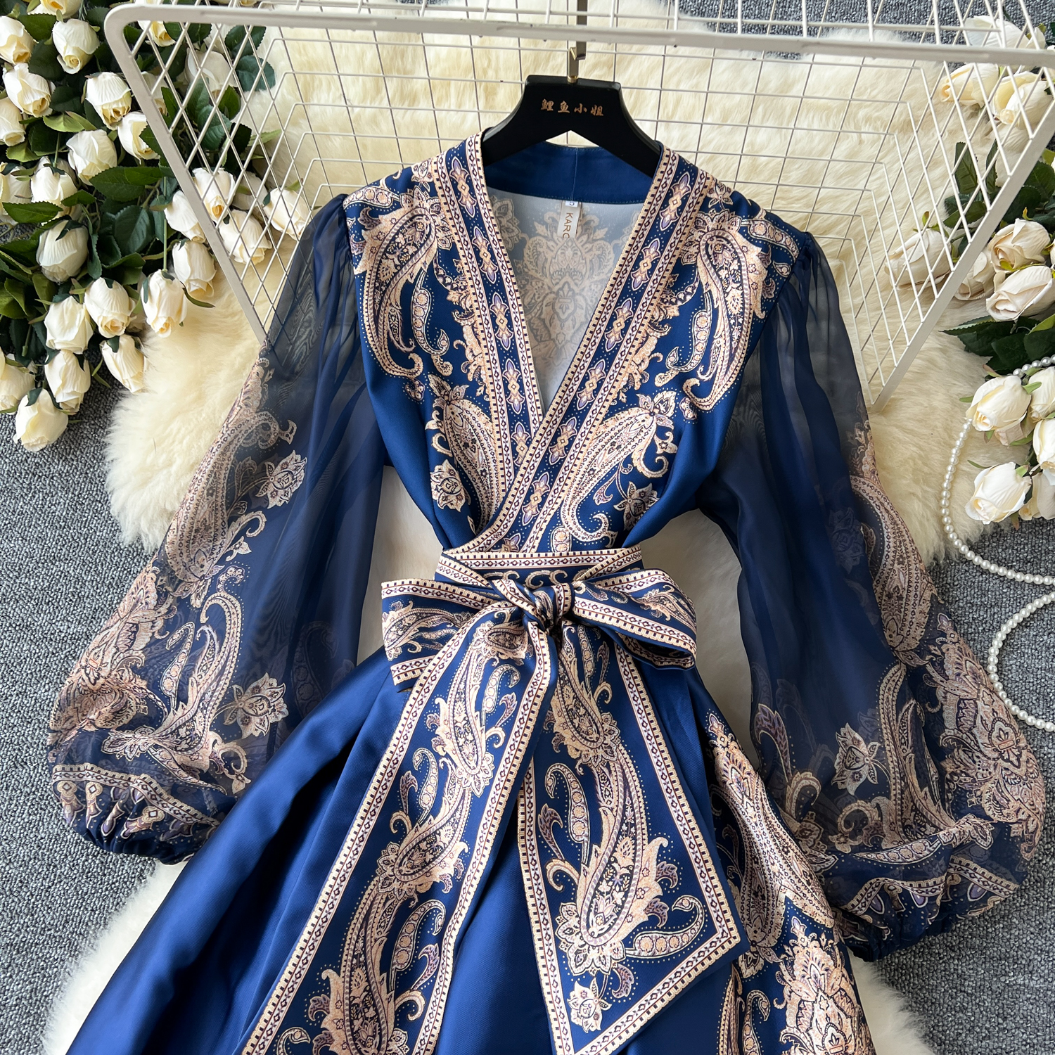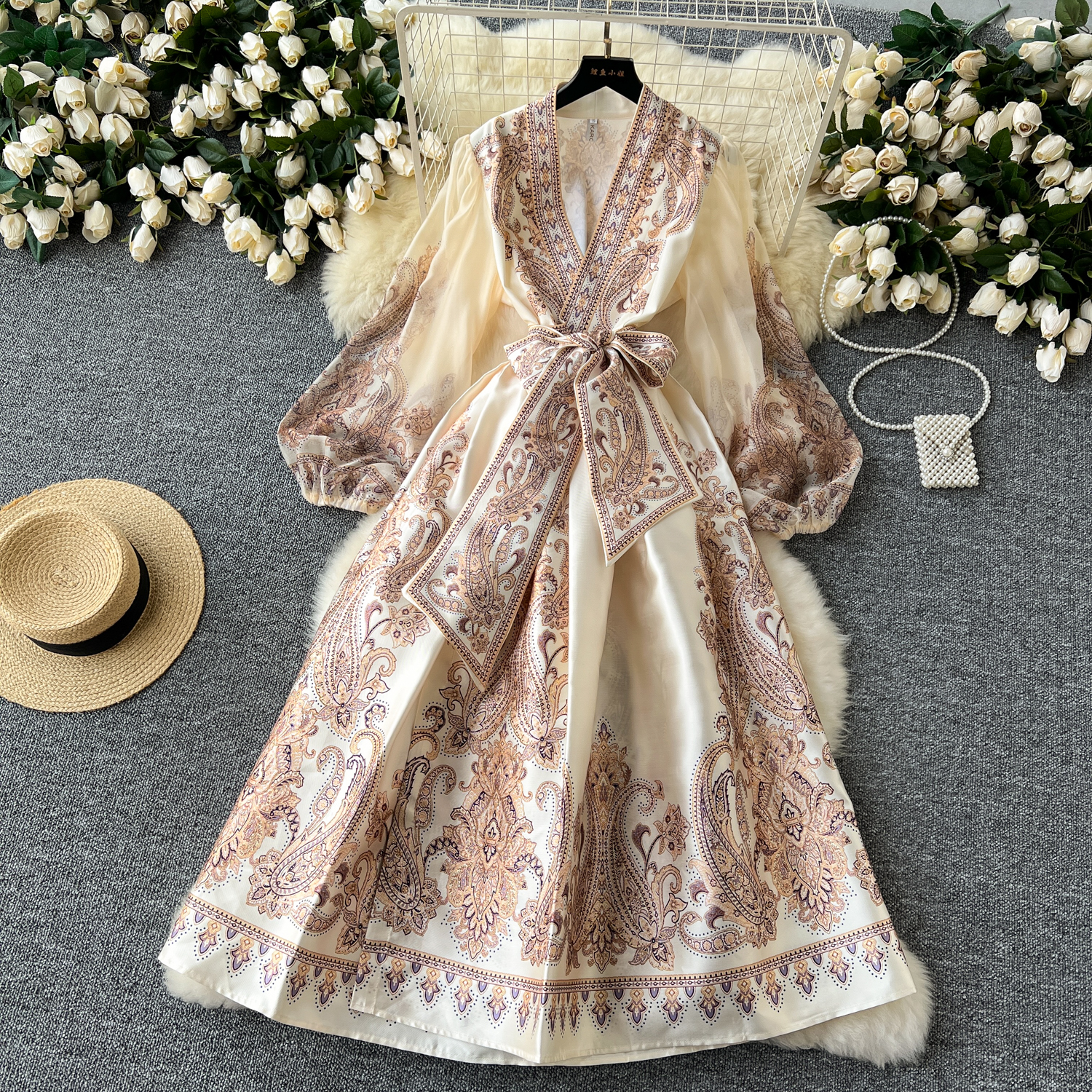 フランスのレトロな花のワンピースの女性の春の夏の灯籠の袖のデザイン感の小さい大衆の千金の王女の気質の大きいスカート