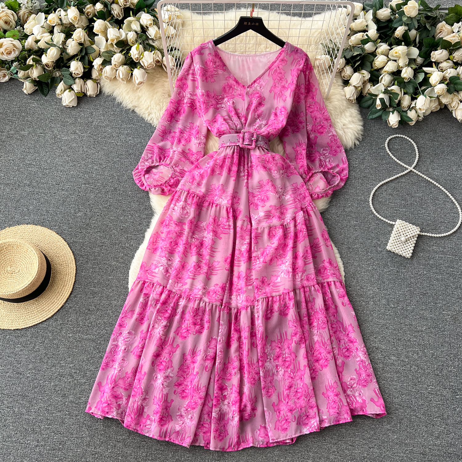 跨境名媛晚宴派对礼服女平时可穿连衣裙欧美收腰绑带一片式连衣裙
