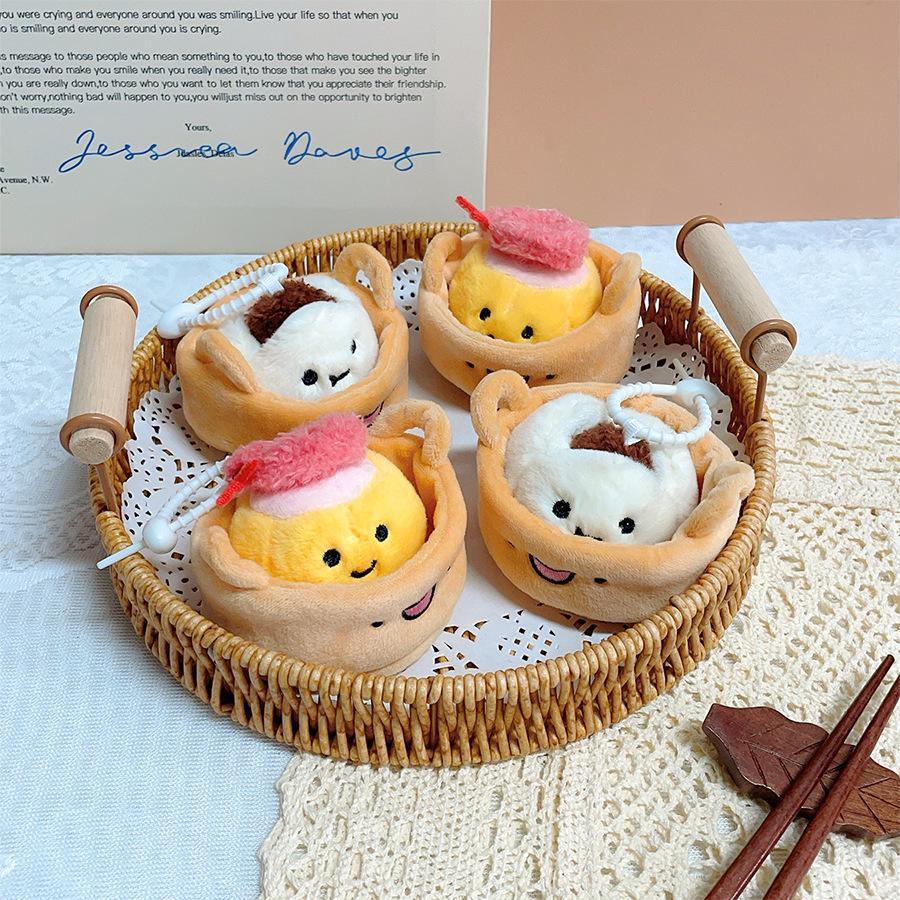 卡通早茶蒸笼包子玩偶挂件钥匙扣烧麦公仔毛绒食物娃娃玩具批发