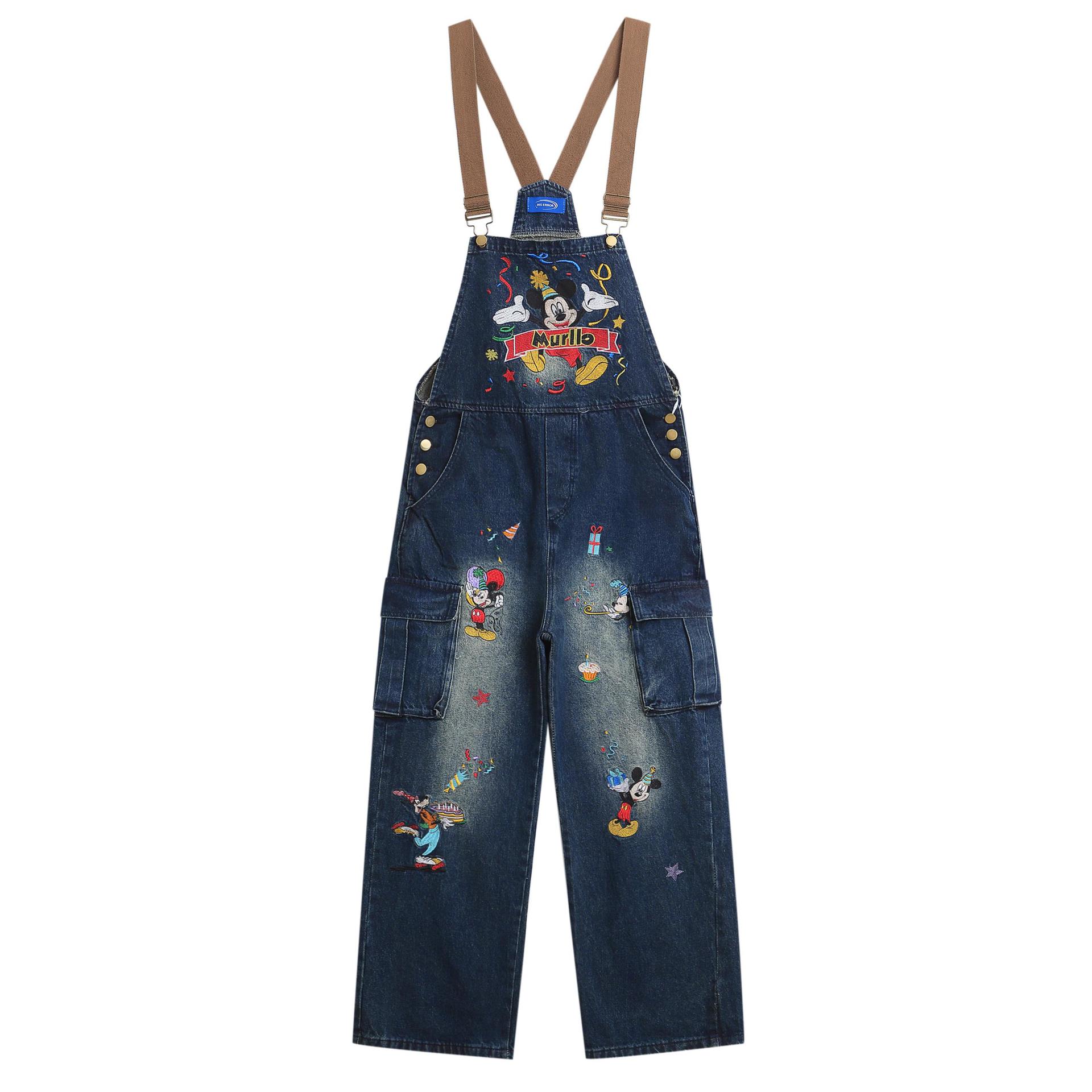 アメリカンレトロミッキーマウス刺繍デニムオーバーオール男女兼用デザイン性のあるカップル向けゆったりジャンプスーツトレンド