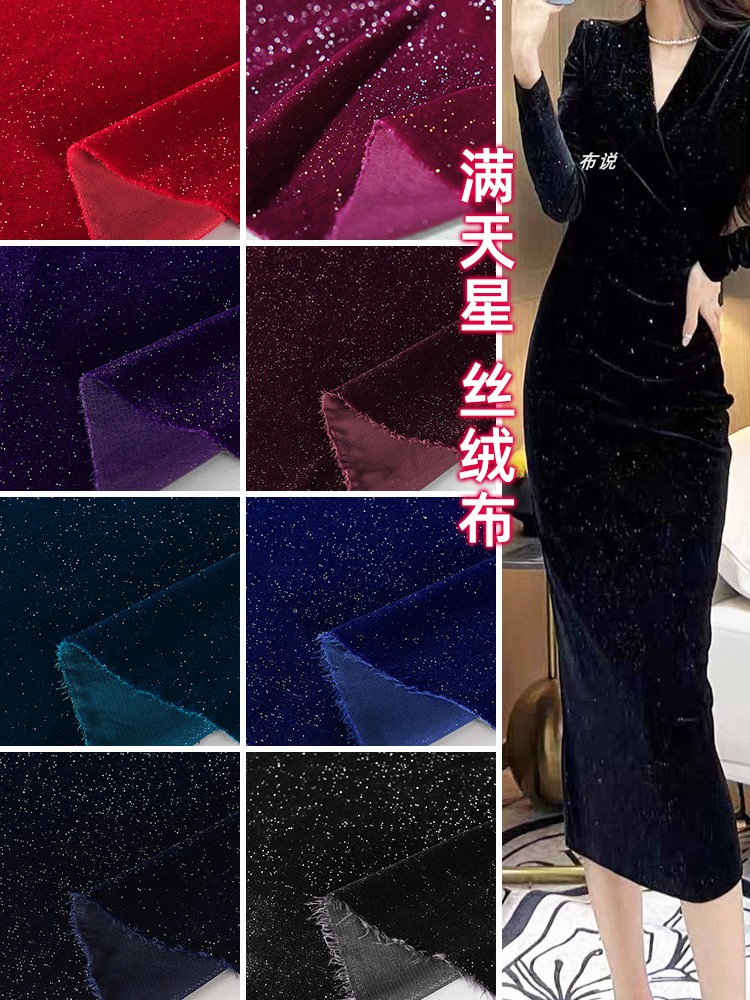亮丝满天星丝绒面料 韩国绒柔软银丝亮闪闪礼服旗袍裙子服装布料