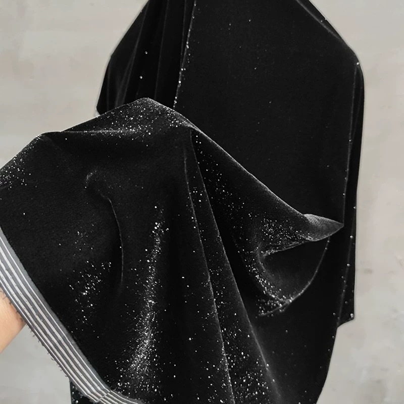 閃銀百変チベット青黒色キラキラシルクベルベットファッション生地春秋スーツコートデザイン感DIY