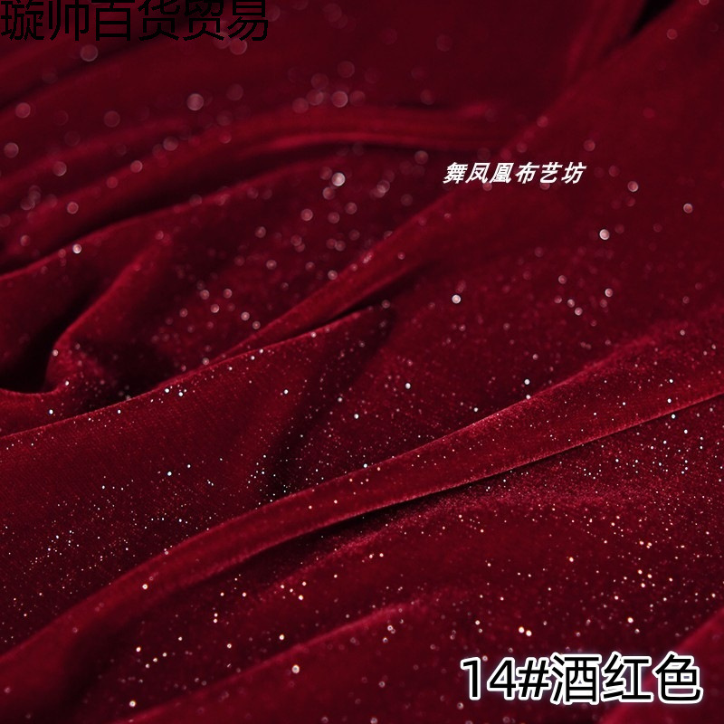 酒红色梭织丝绒满天星亮丝韩绒布料 闪闪发光金丝绒不倒绒面料