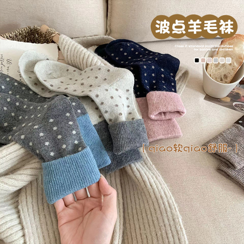 冬用厚手保温ウールソックス レディース カラーブロック 小ドット柄ソックス 滑り止め 日本風 可愛い ミドル丈 レディース パイルソックス