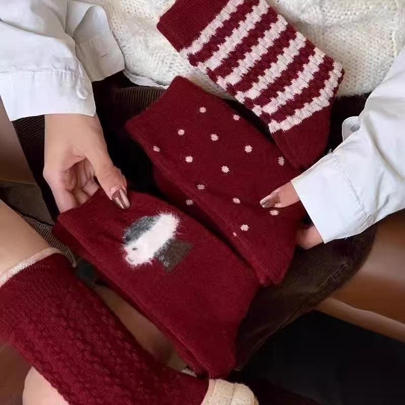 秋冬レトロ馬年新年赤い靴下男性カップル干支年花嫁ロングソックス結婚式用靴下赤いミドル丈靴下女性用