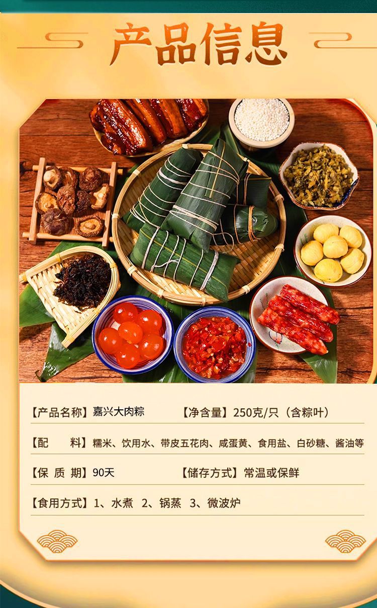 【嘉興風味新鮮大肉粽】双卵黄五花250g多味真空朝食インスタント半製品