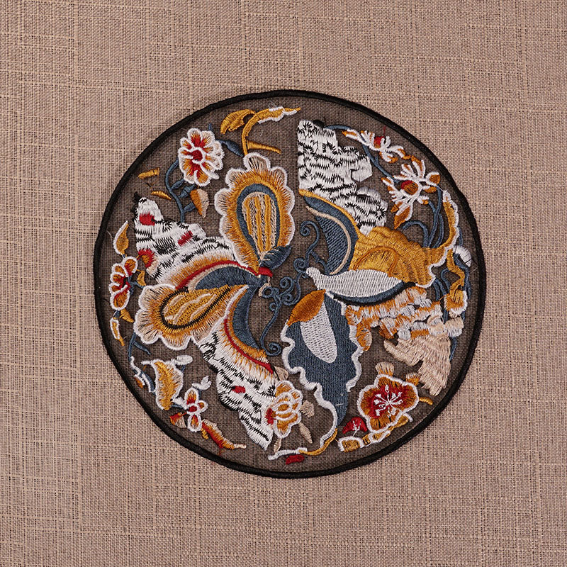 円形中国風補子民族風チャイナドレス漢服装飾服に大きな刺繍を貼って刺繍を貼って貼ります。