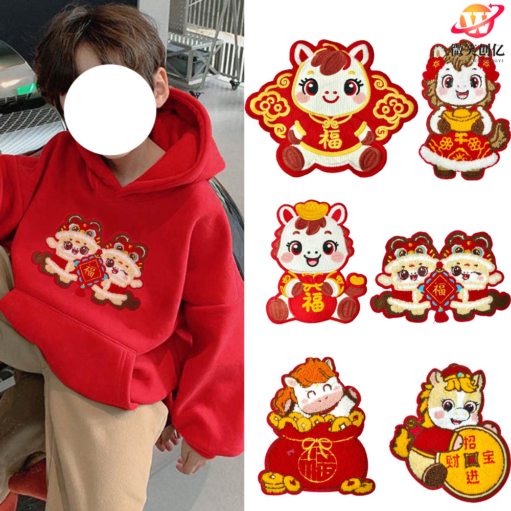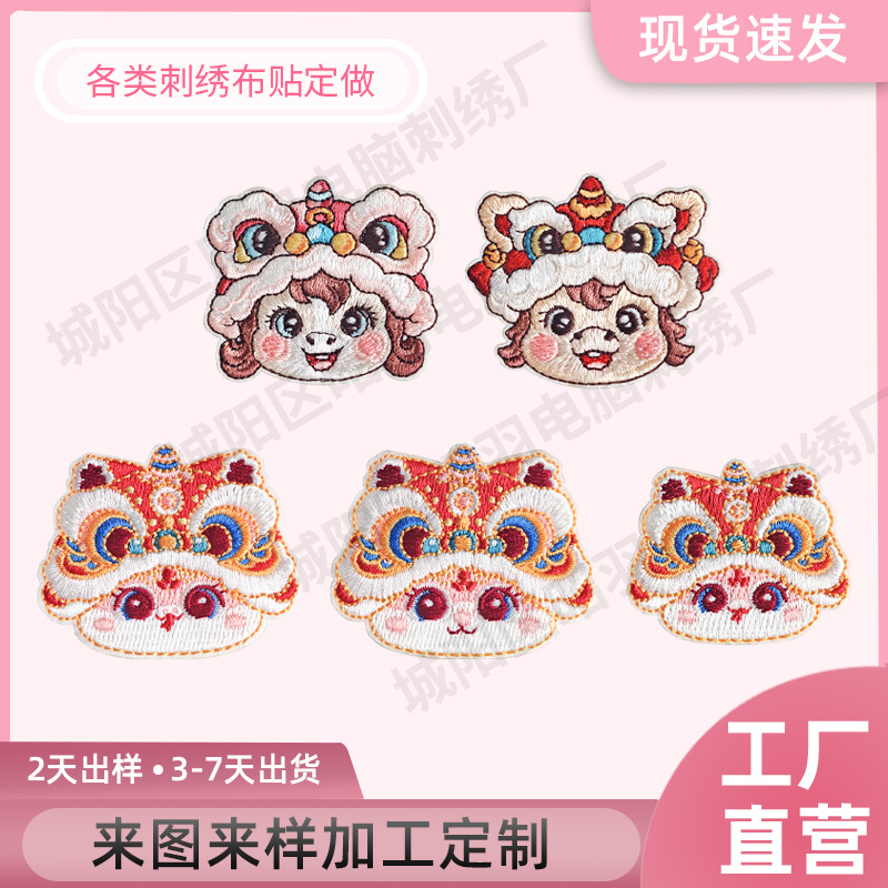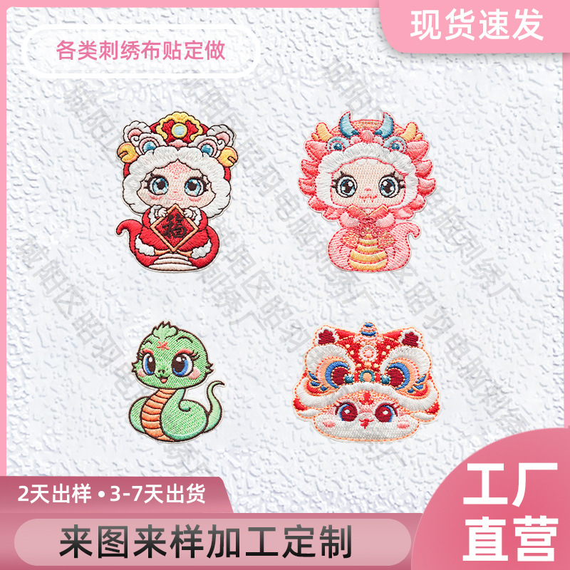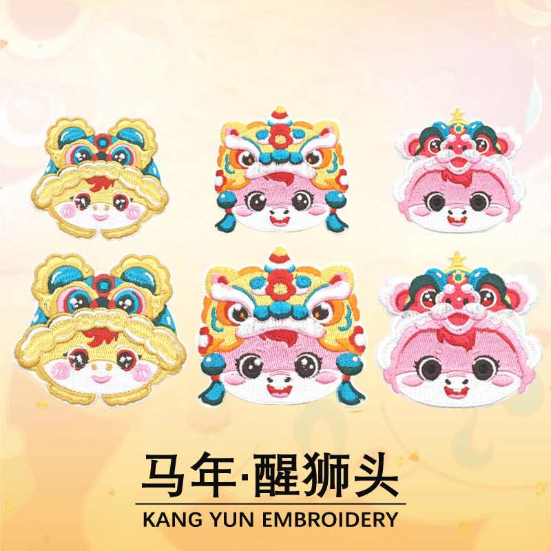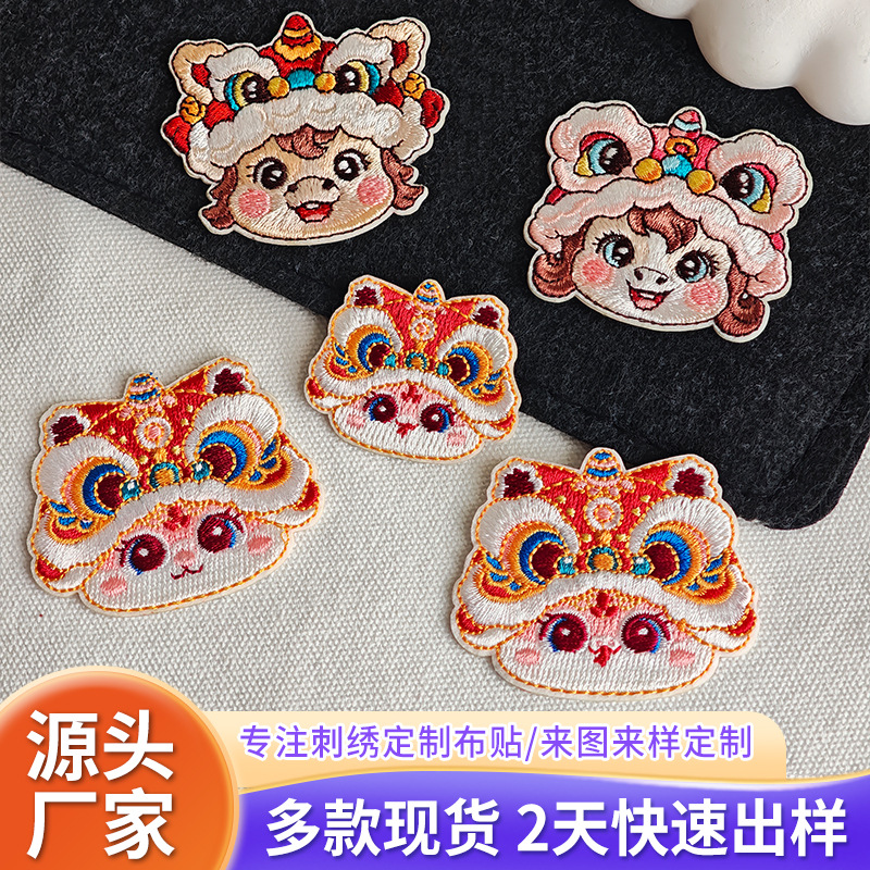 2026新品马年刺绣布贴春节装饰自粘贴新年国风醒狮衣服熨烫补丁贴