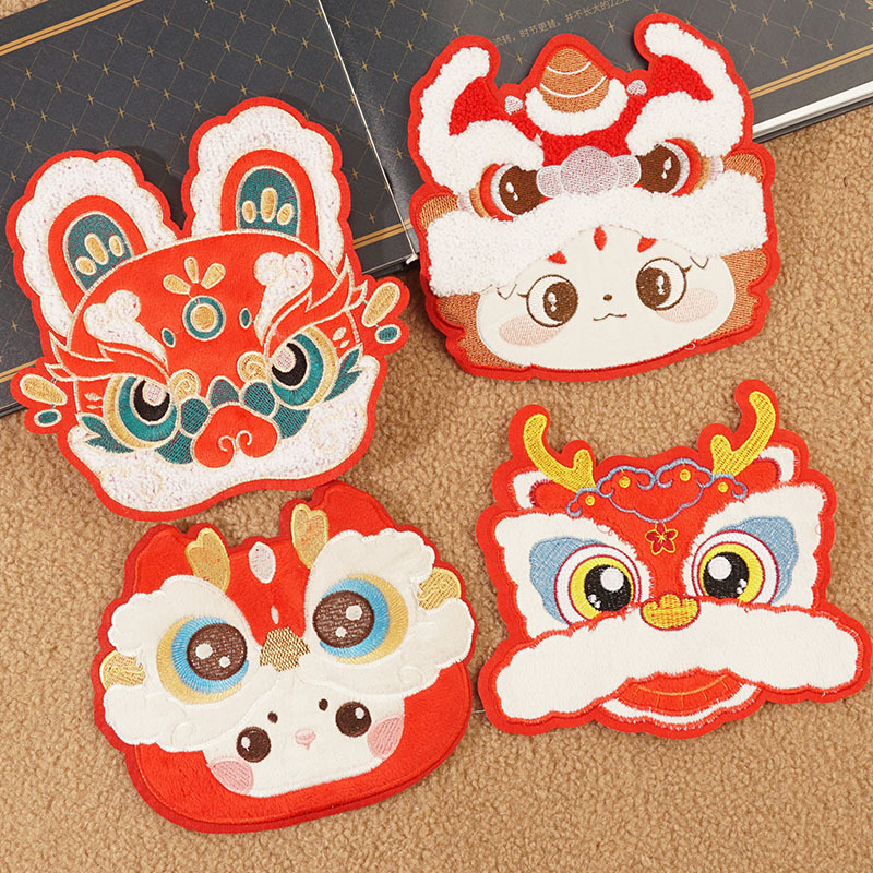 2026年古典中国風十二支動物獅子頭刺繍ワッペン馬龍蛇頭新年春節布ワッペン