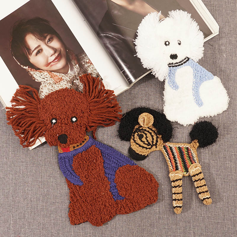 毛の子犬の大きいサイズは布を貼っておしゃれな服を刺繍します。