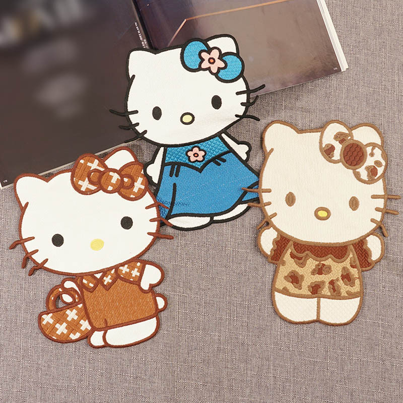 KITTYファッション漫画刺繍貼りバスケットバッグ装飾模様貼り花大サイズかわいい布貼りパッチ