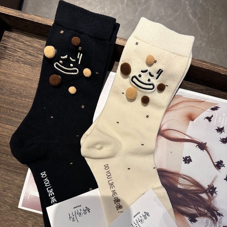 24新型秋冬靴下婦人個性ファッション靴下立体毛玉刺繍が変な模様をしています。