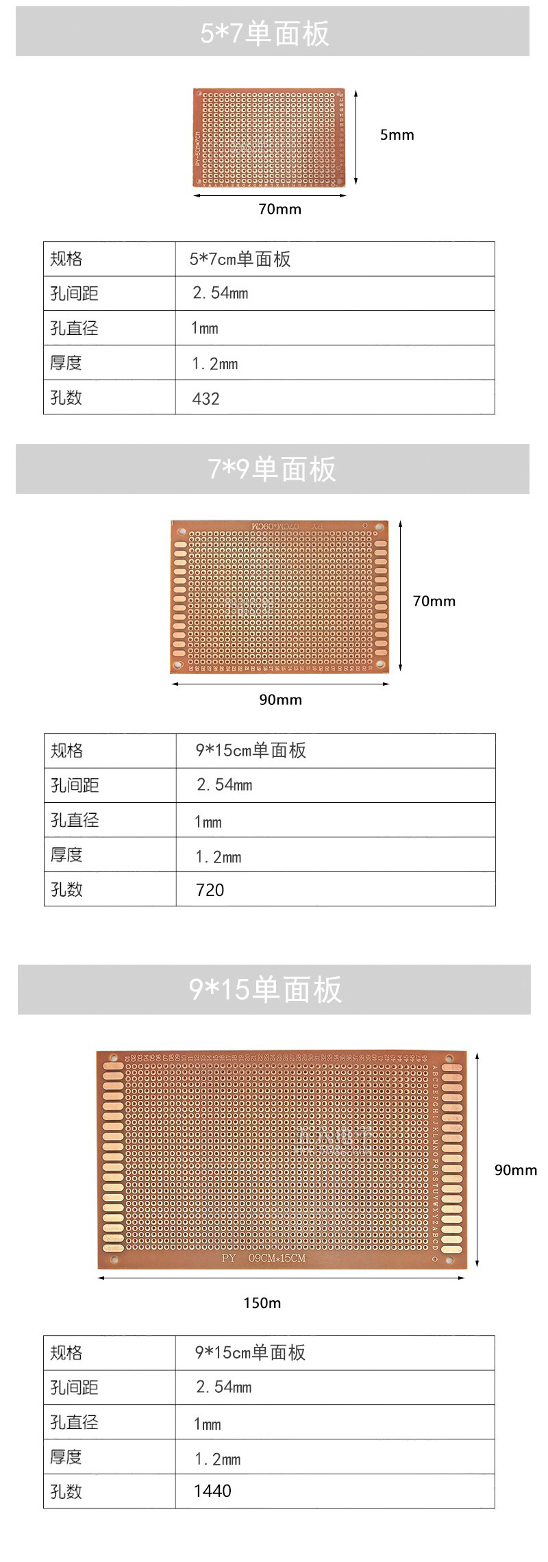 片面万能板2.54mm回路基板学生溶接diy実験pcb電子洞板回路基板