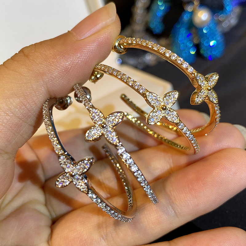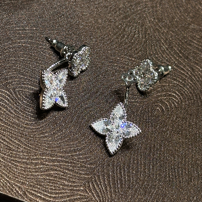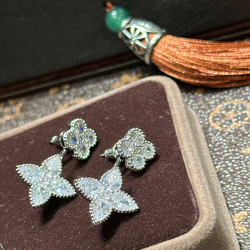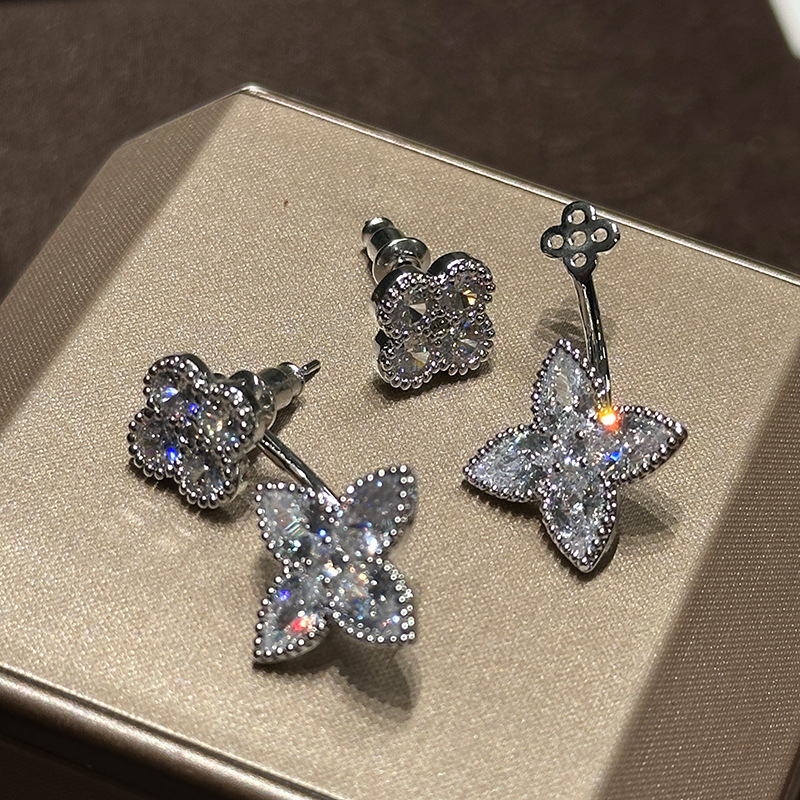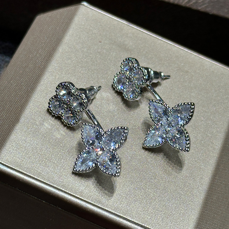 精巧な四葉の花のイヤリングの経典のイヤリングは925銀の針の満ドリルの前後でわずかにジルコンのイヤリングの贈り物の彼女を入れます。