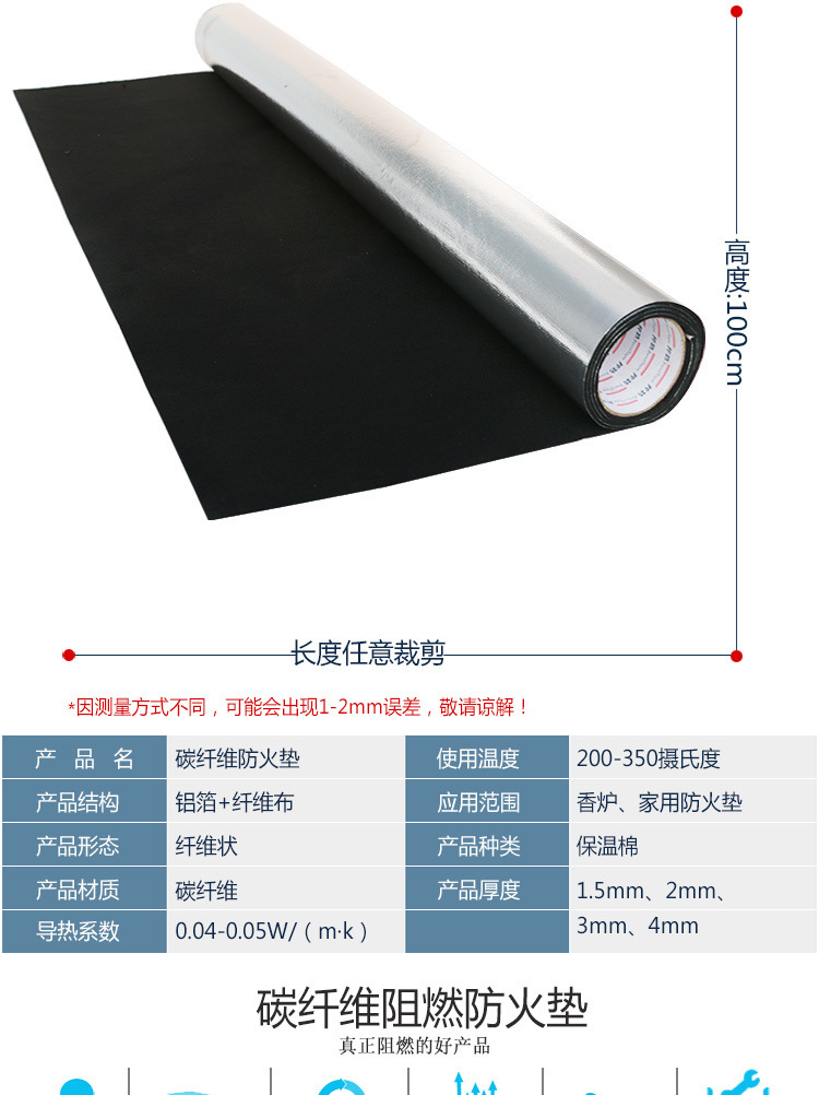 炭素繊維防火マット香炉香箱防火綿耐高温防熱スペーサー綿自己接着防火断熱綿