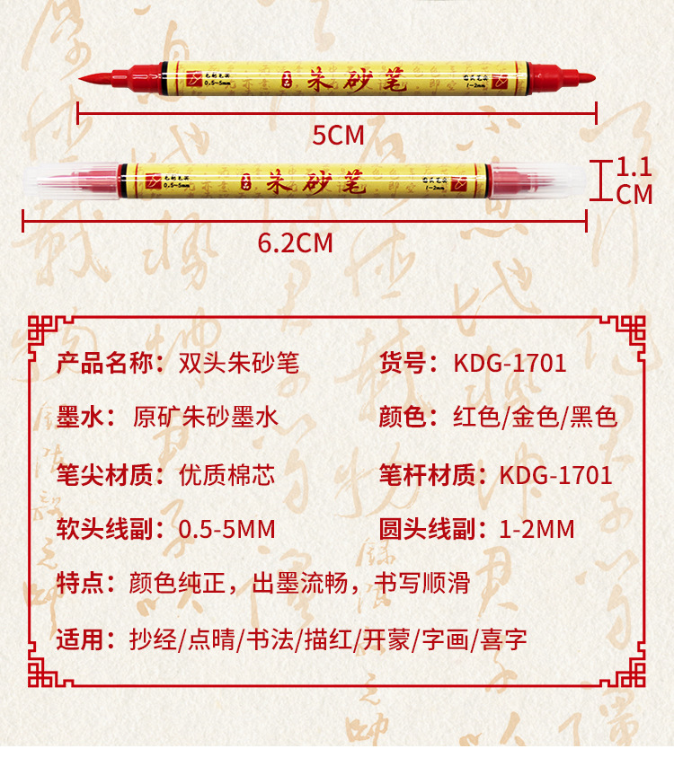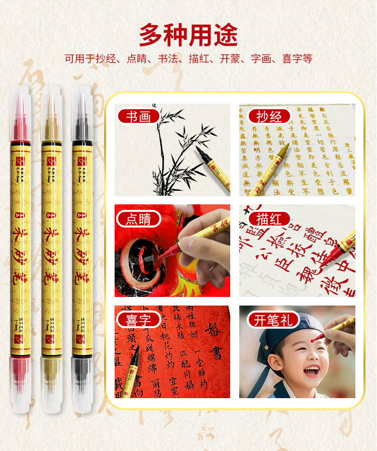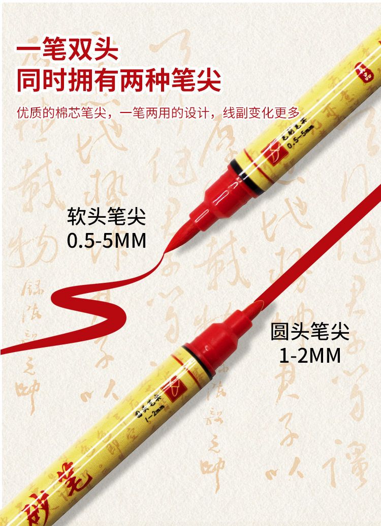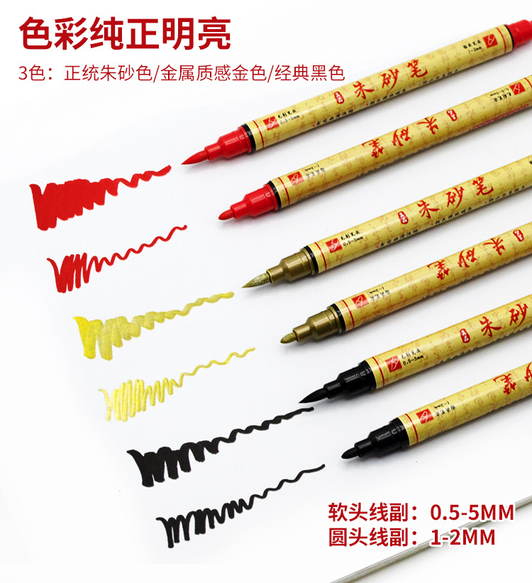 多機能朱砂墨開礼筆点眼書道描紅朱砂筆小楷軟頭紅墨汁直液式毛筆