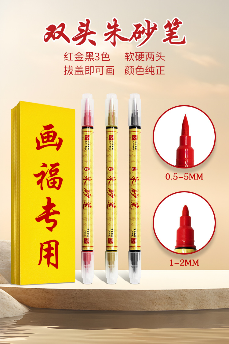 双头朱砂笔含朱砂液道家书法红墨开礼点睛符画笔黄福练字毛笔精选