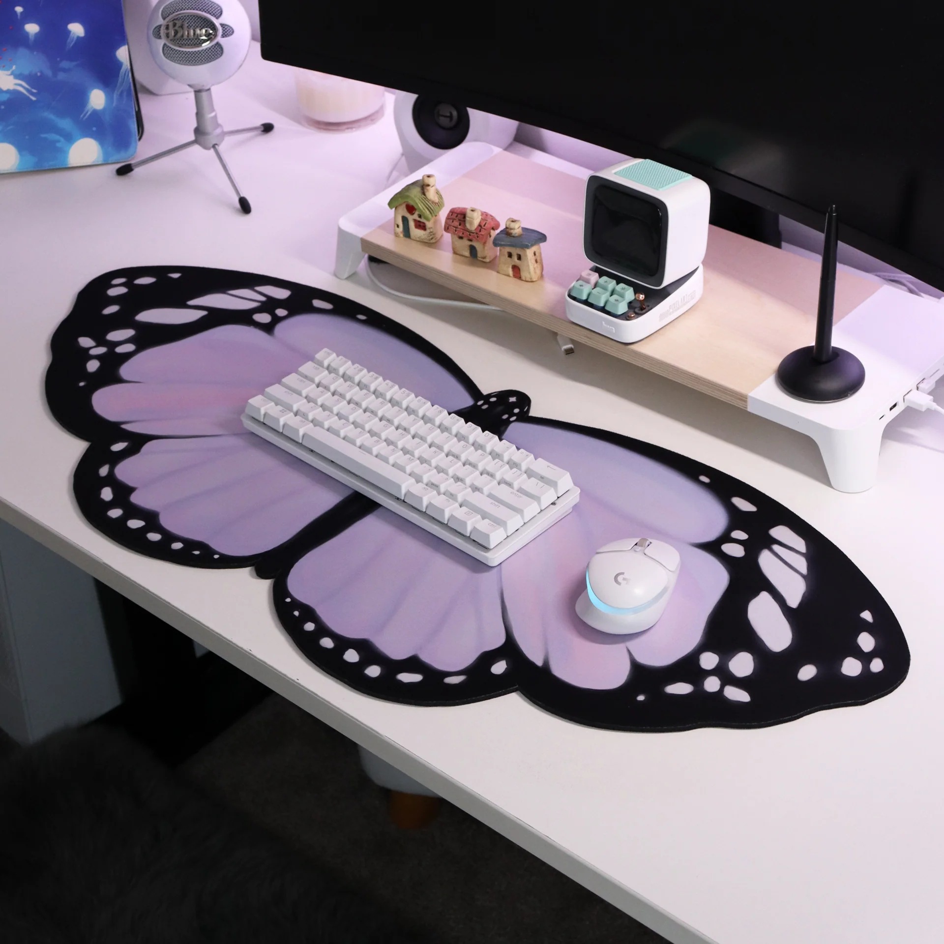 蝶の不規則なマウスのキーボードのパッドのデスクのマットの電気競争の部屋の装飾の汚れに強い滑り止めのキーボードのマット