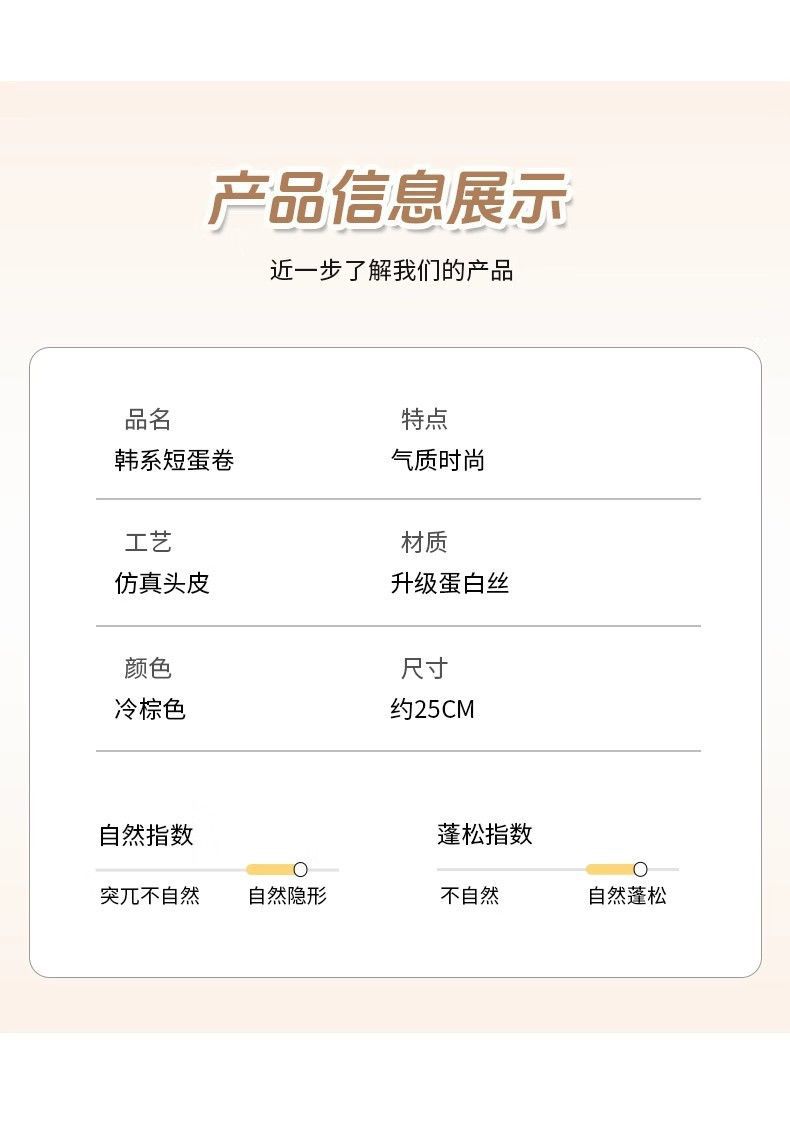 假发全头套女自然仿真韩系蛋蛋卷修颜减龄日常整顶无痕短发假发套