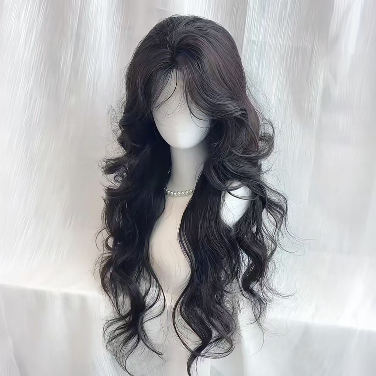 子碁のかつらの女性は自然に高レベルの中で長い鎖骨の髪をシミュレーションして顔を直します。