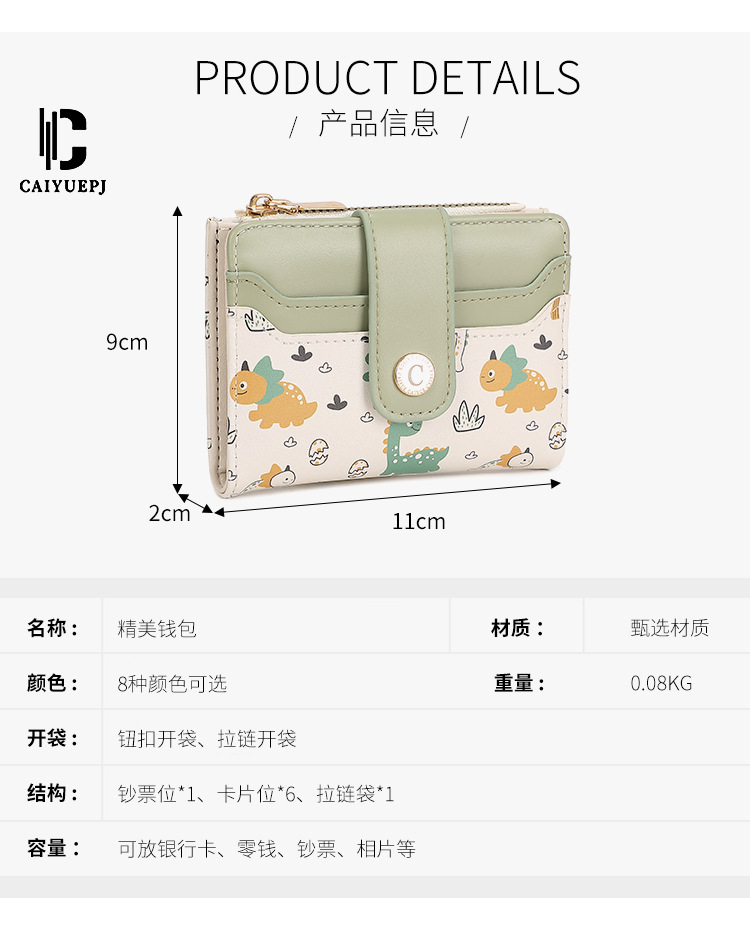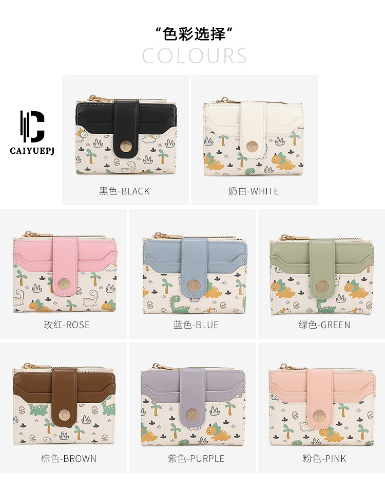 新しい財布の女性のショートタイプのクロスボーダーのかわいい恐竜の衝突色のファスナーの0財布の多カードのカードのカバンの女性のwallet