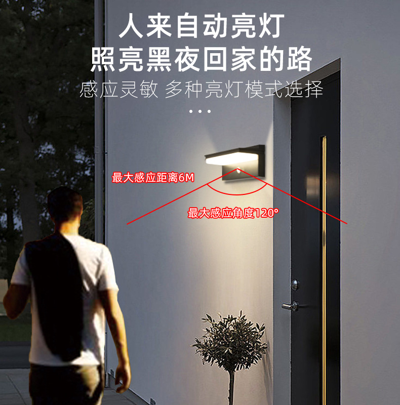新しいクロスボーダーソーラー屋外ガーデンライト人体誘導ホーム屋外防水照明ガーデンヴィラウォールライト