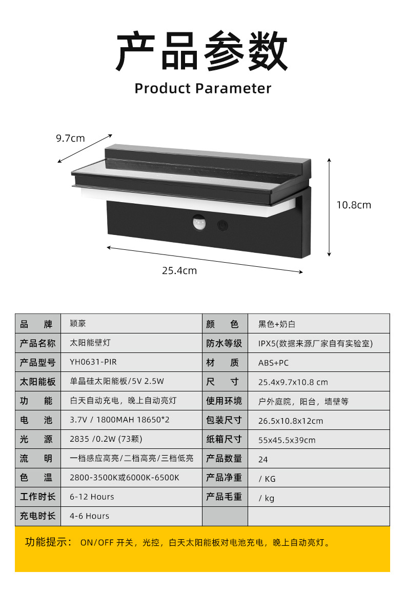 仕様の分類 YH0631-PIR ホワイトライト,YH0631-PIR 暖かい光