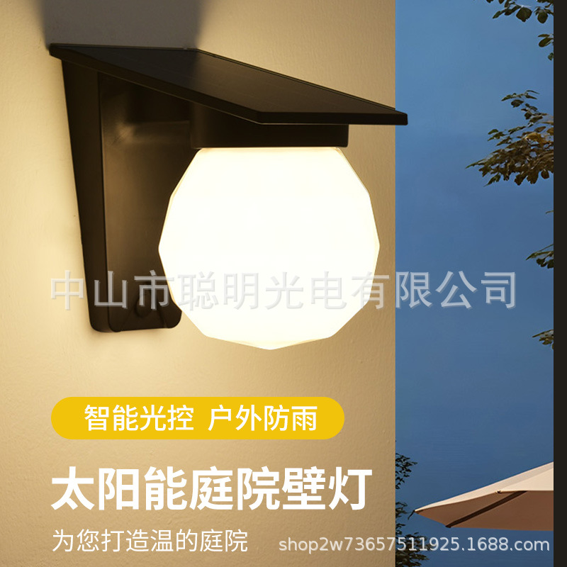 新しいソーラー式円形壁掛けライト、別荘の屋外壁照明、街路灯、屋外防水装飾球形照明器具