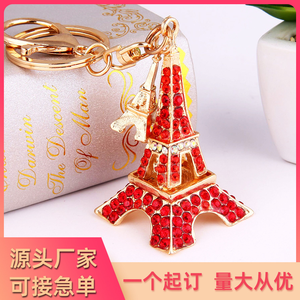厳選されたクリエイティブなパリのエッフェル塔ダイヤモンド付き合金キーホルダー、女性用バッグ装飾、車用ペンダント、メーカー卸売