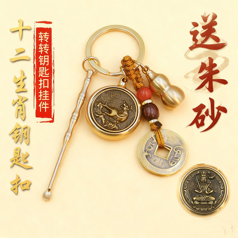 黄銅十二生肖がお金のキーホルダーを回す時、車のストラップを運転して片面回転します。