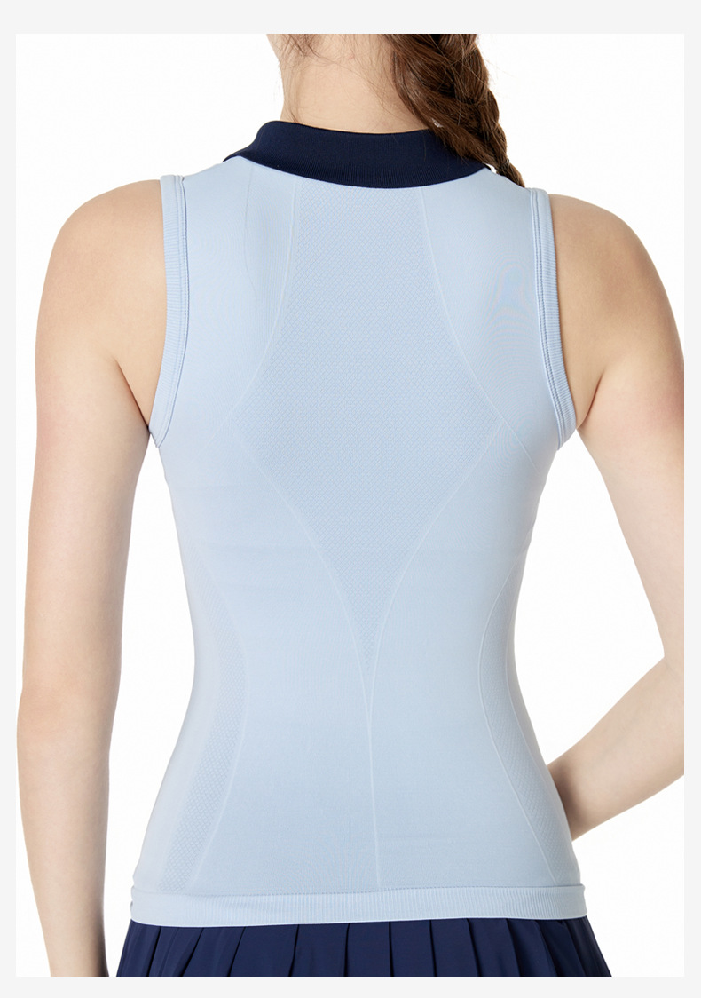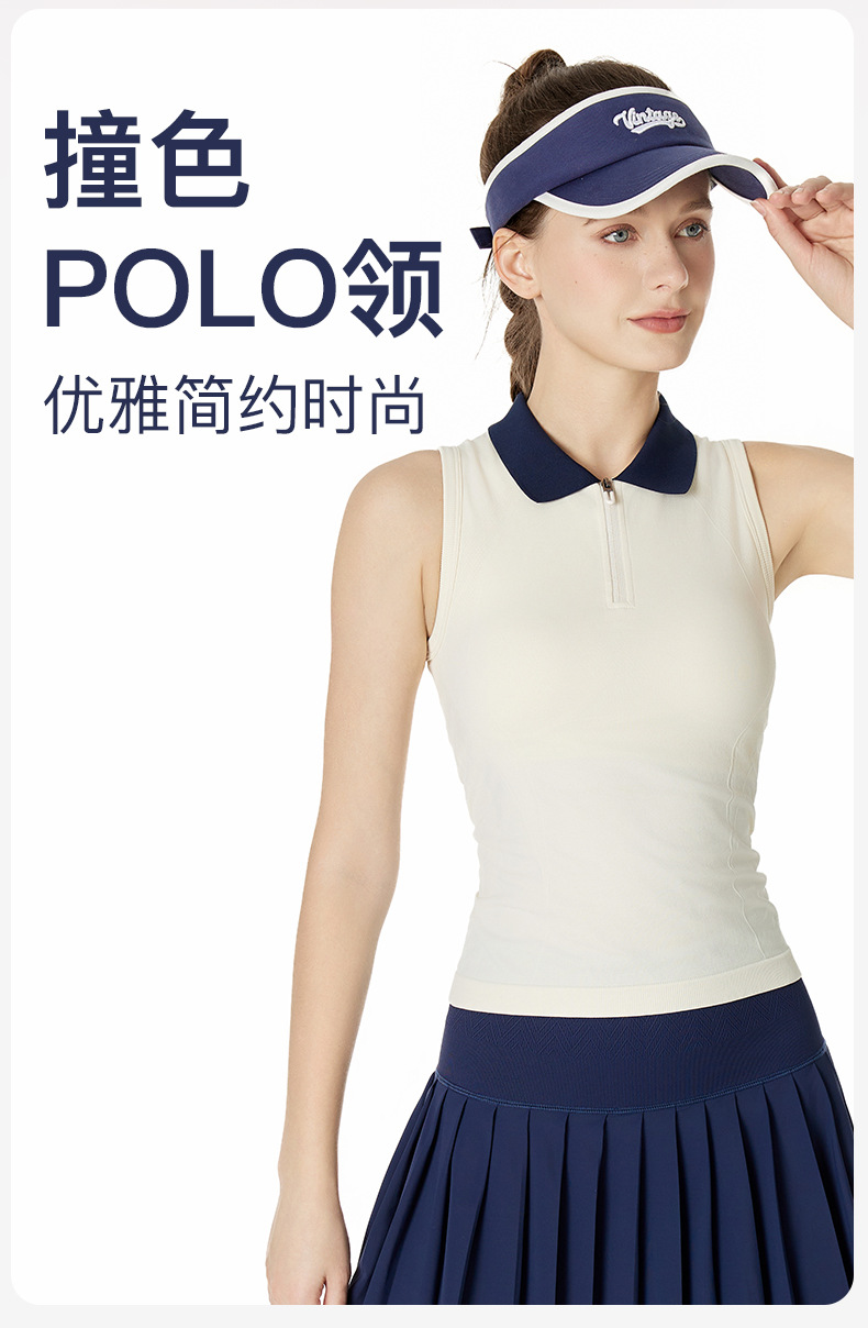 新しいラペルV字型ポロカラースポーツベストシームレスワンピース織りスリムスプリットテニストップ
