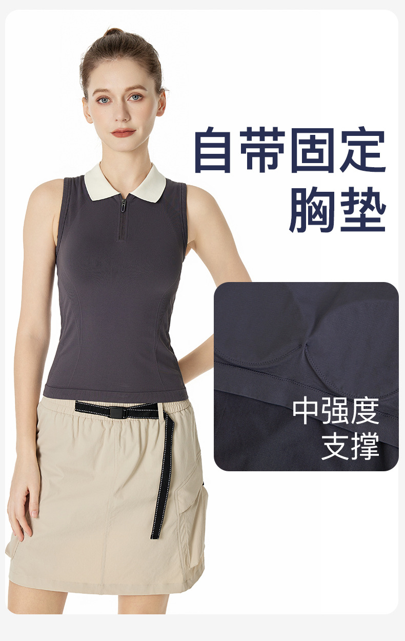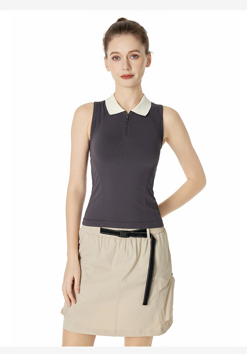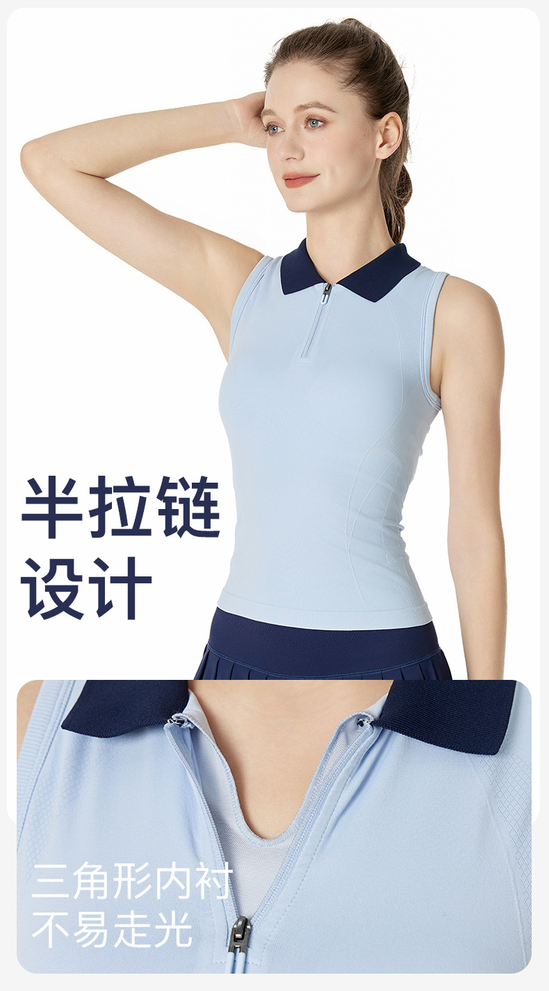 半ファスナーpolo襟ノースリーブtシャツシームレス一体織は固定杯のフィットネス運動ベストを持っています。