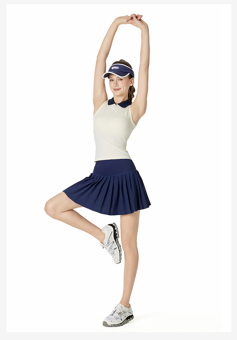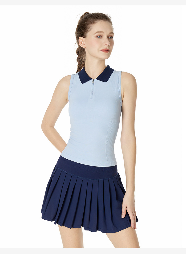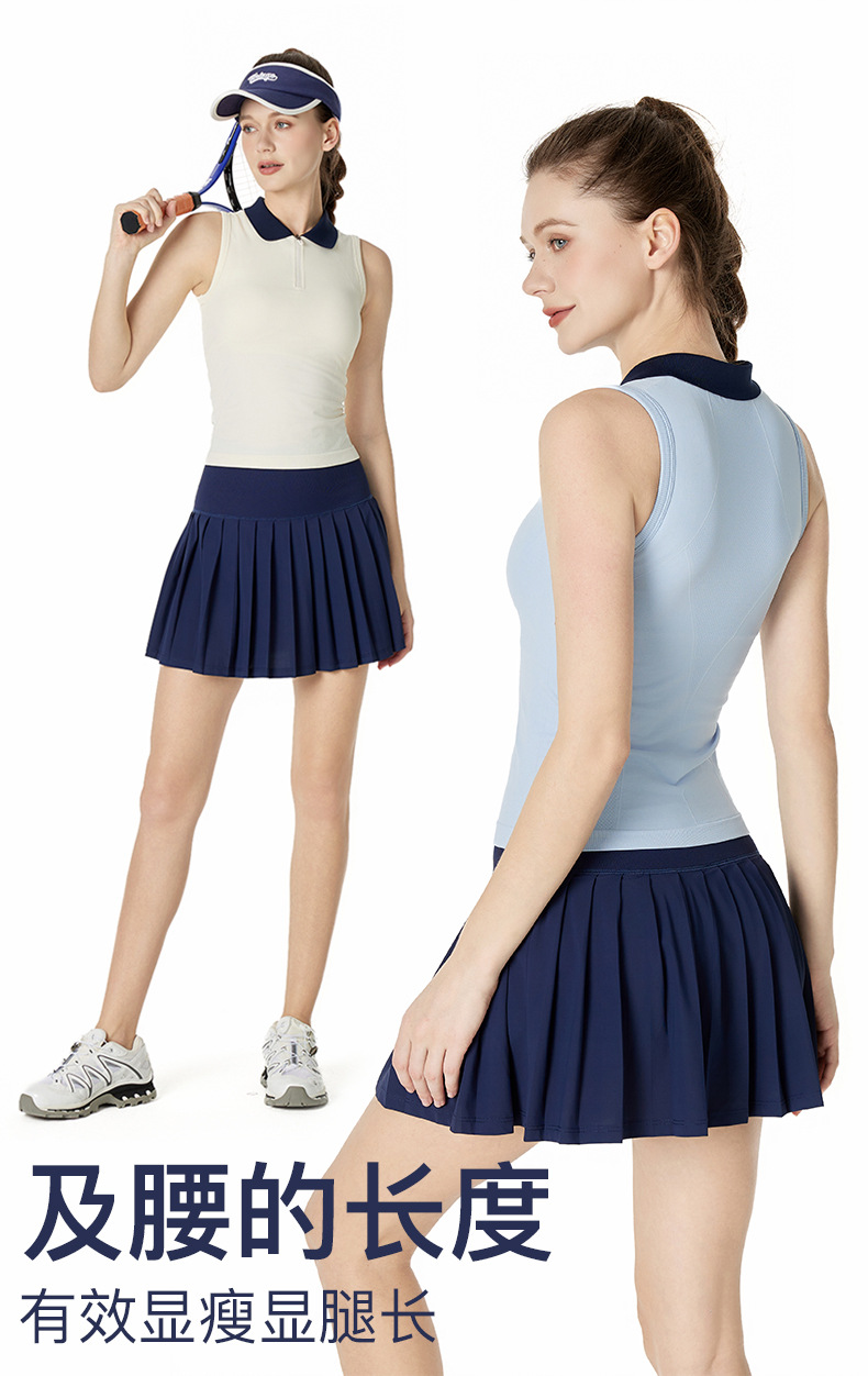 ラペルV字型POLOカラースポーツベストシームレスワンピース織りスリムスプリットテニススーツスカート