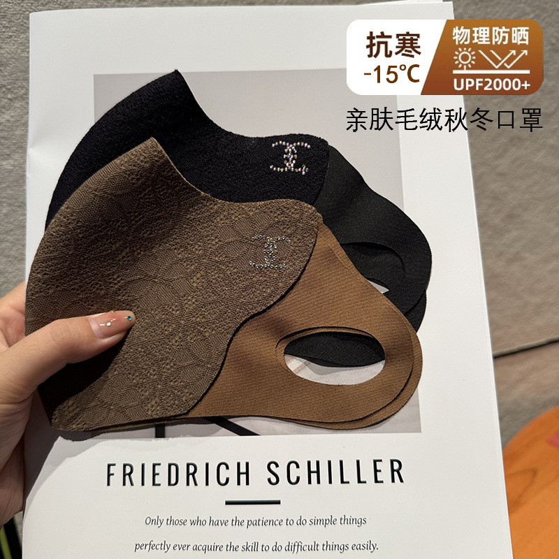 2025新款斜纹防羊绒立体高颜值秋冬洋气时尚口罩骑行防风挂耳式