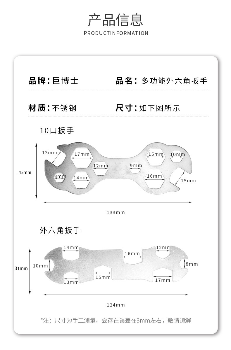 外花片レンチ自転車修理工具開口梅レンチ多機能工具多口開口レンチ