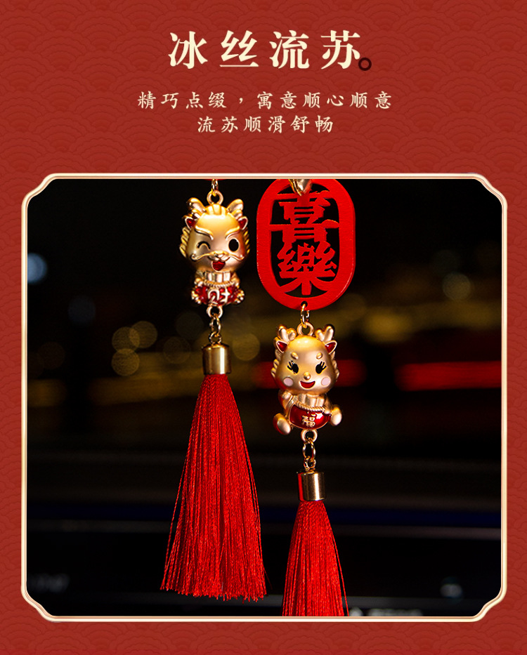 十二生肖新春金2025手作り国潮風車載ストラップ中国龍国潮鳳冠ストラップ