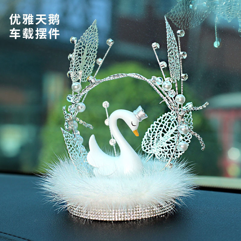 車の装飾品、カップル用の白鳥、車載センターコンソールデコレーション、インスタ映えする女神風車内アクセサリー、移動式インスタ風デコレーション