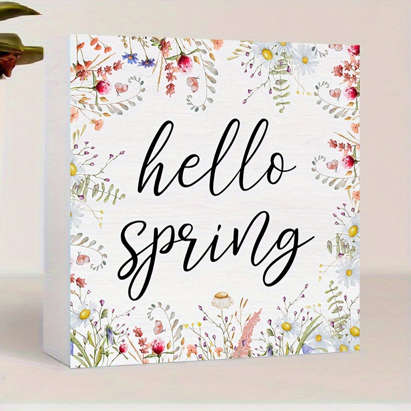 春の装飾農舎スタイルのデスクトップ装飾PVCロゴ、春のこんにちはPVC石版、田舎の家