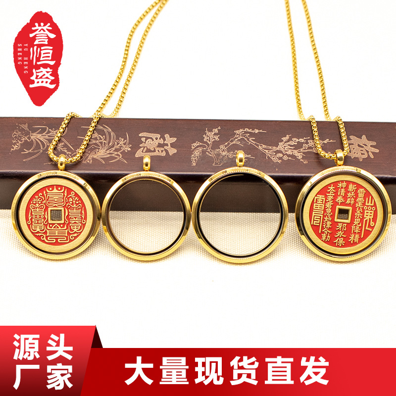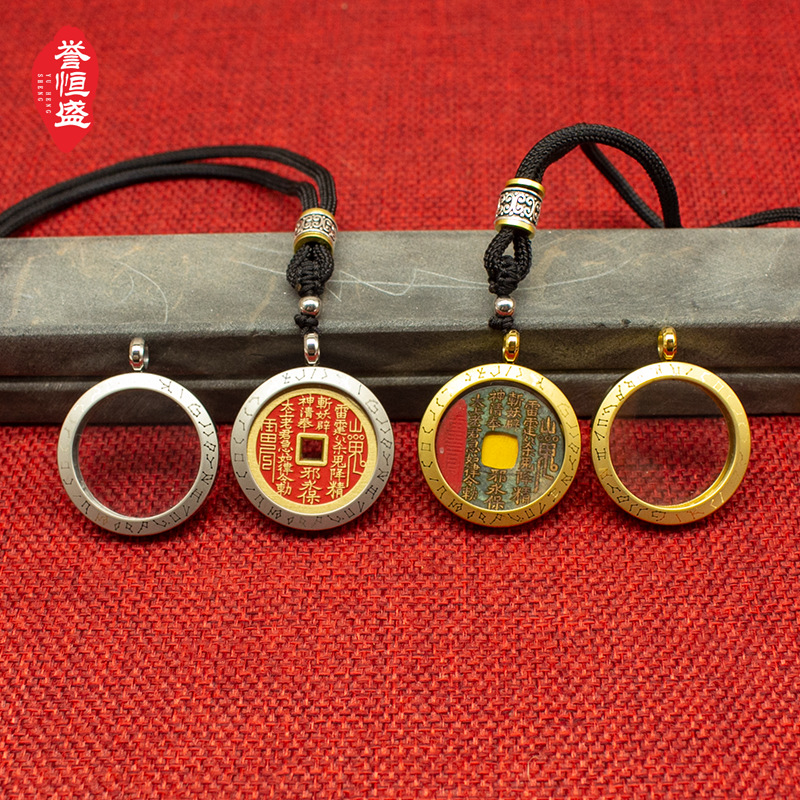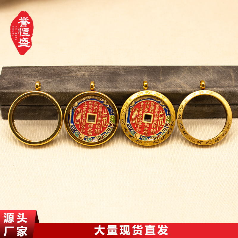 山鬼花钱保護ケースペンダント真鍮製吉祥平面ガウボックス吊り飾り高級感工場直販ネックレス