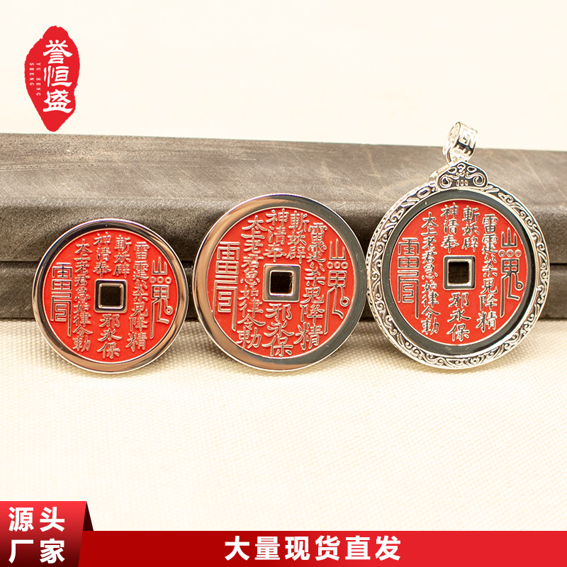 山鬼花钱ペンダント朱砂紫銅黄銅白銅吉祥飾り吊り下げ飾り置物車のキーホルダー現代風