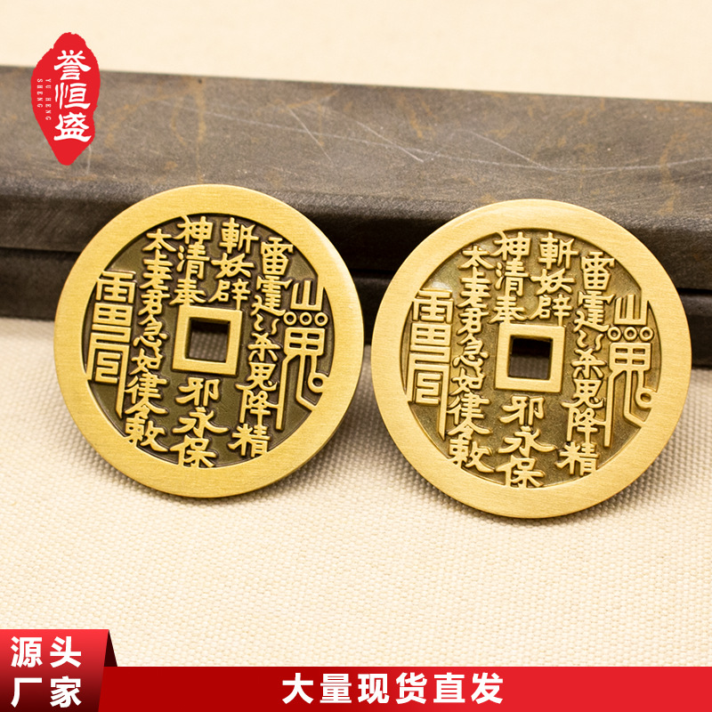 卸売 山鬼花钱 純黄銅製 アンティーク風コインペンダント 置物 八卦工芸品 キーホルダー 如意ペンダント
